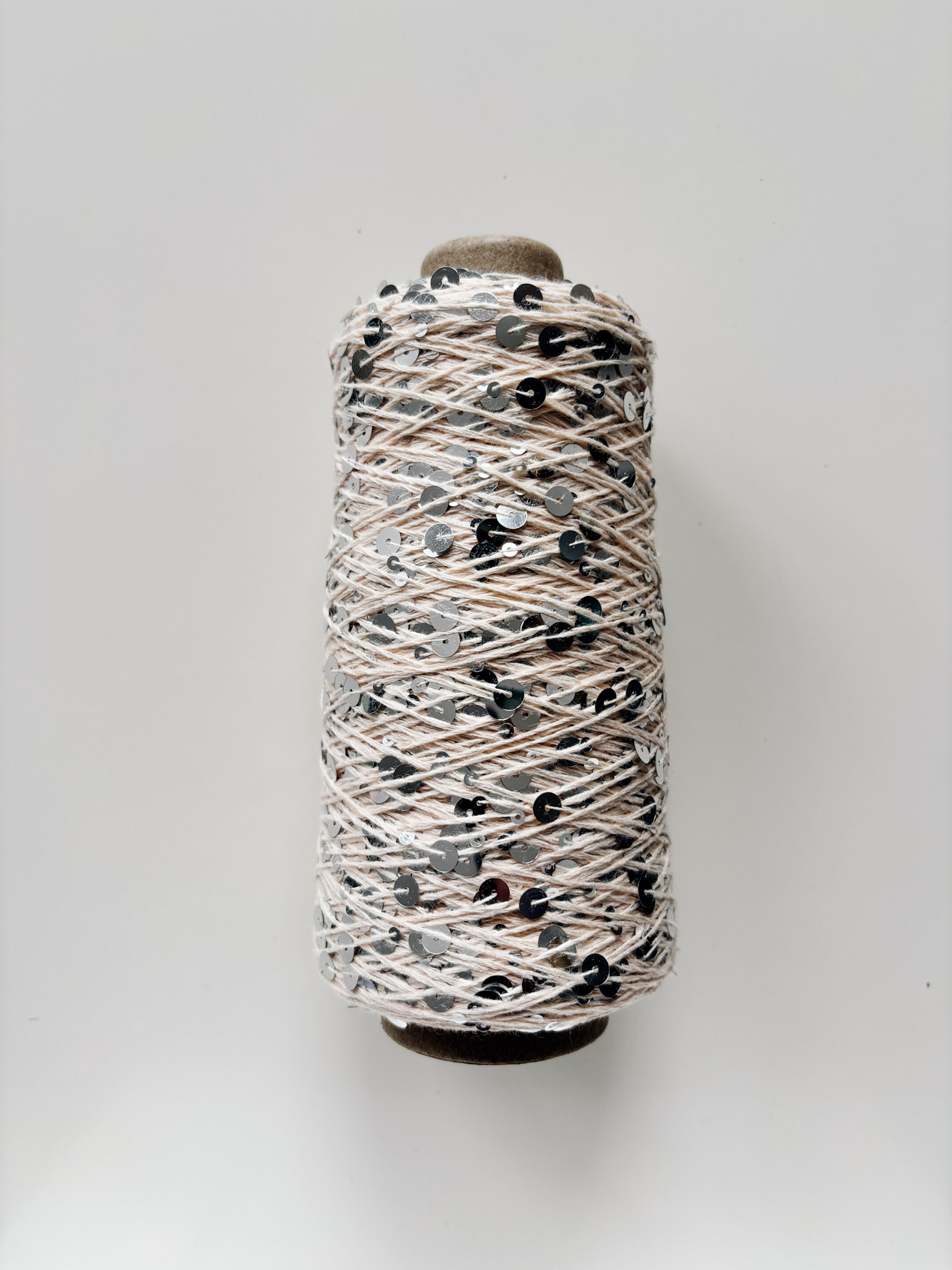 W trakcie dziergania cekiny mogą lekko przeskakiwać na nitce – to naturalne. Włóczka z cekinami lubi luźniejsze napięcie, aby zachować elastyczność. Zzalecane łączenie z innymi włóczkami „bez cekinów” dla uzyskania bogatszej struktury. Różne partie mogą minimalnie różnić się rozmieszczeniem lub odcieniem cekinów. Przy blokowaniu ostrożnie formować projekt, bez nadmiernego rozciągania miejsc z cekinami.