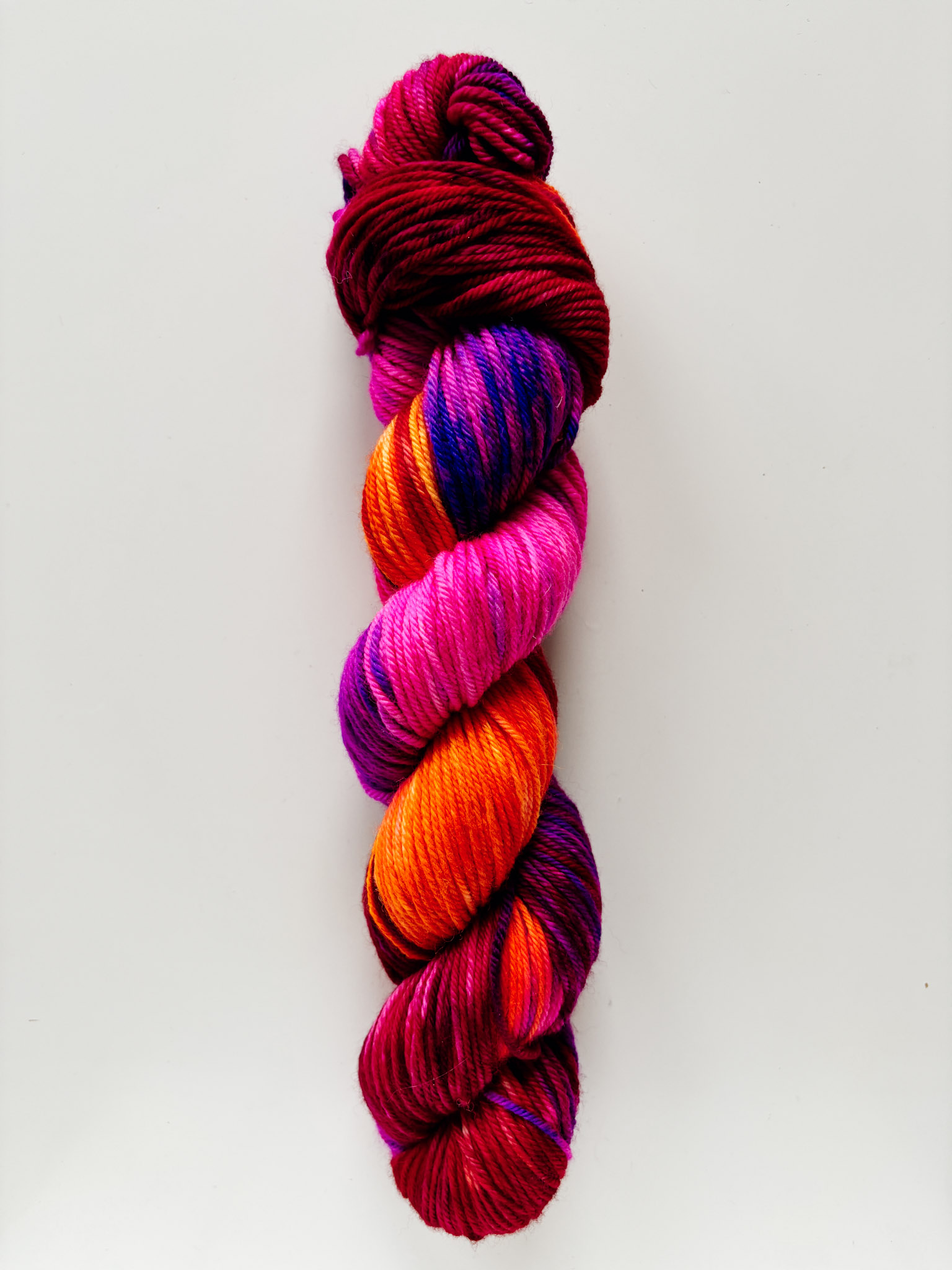 Pamiętaj, że włóczka jest barwiona ręcznie, więc każdy motek jest unikalny i może się różnić od reszty. To oznacza, że gdy robisz większy projekt, warto jest używać włóczki z dwóch motków na przemian, żeby uniknąć widocznych różnic kolorów.