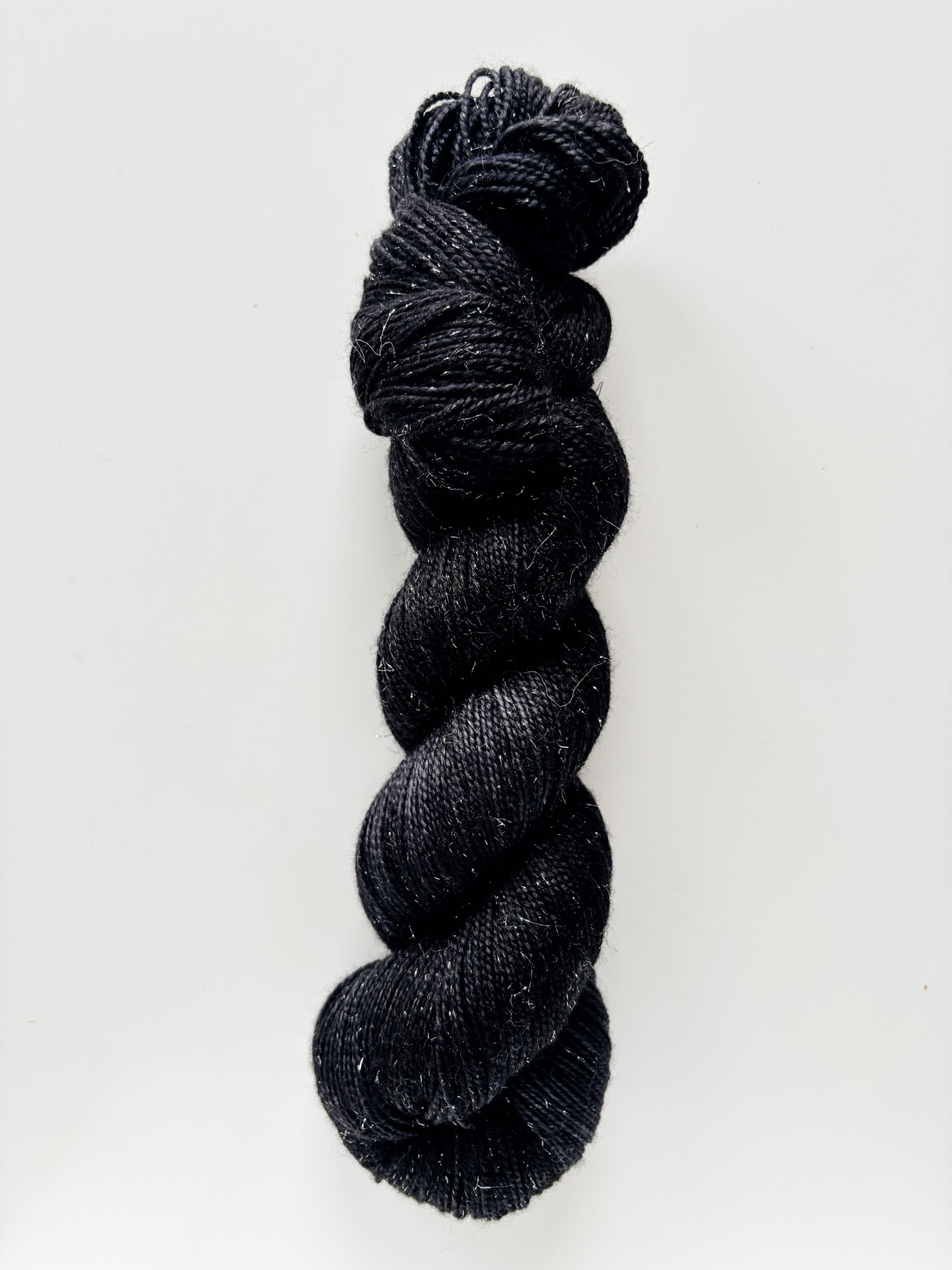 Wysoki skręt: Włóczka składa się z dwóch nitek o wysokim skręcie, co zapewnia trwałość i sprężystość gotowego wyrobu oraz dodatkowej nici błyszczącej w kolorach srebra lub złota (kolor stelliny częściowo może być zabarwiony w kolorze motka)