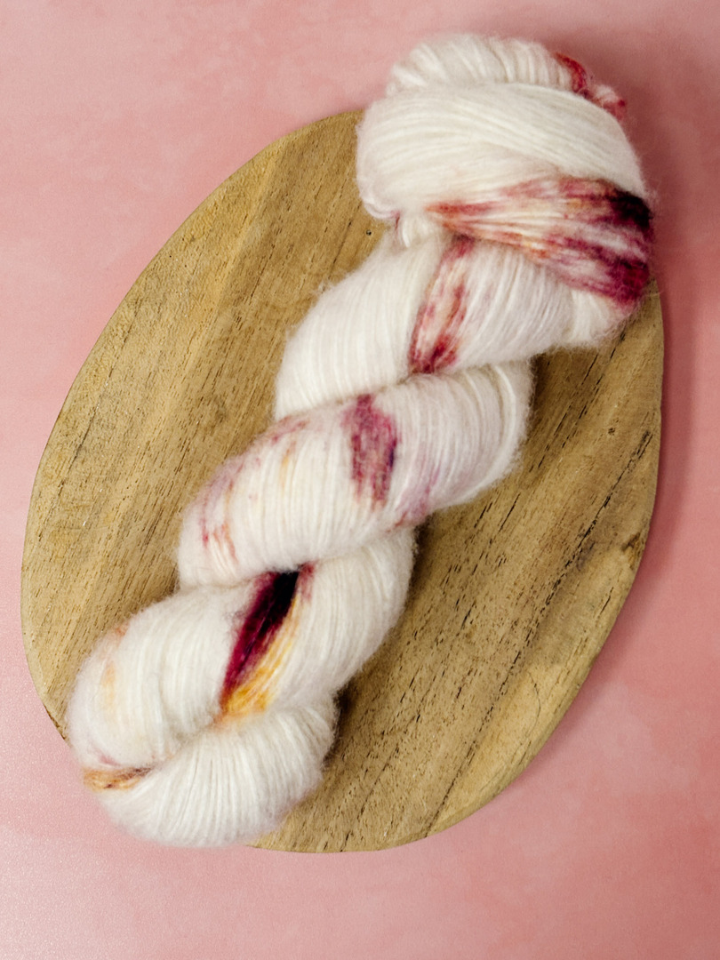 Pamiętaj, że włóczka jest barwiona ręcznie, więc każdy motek jest unikalny i może się różnić od reszty. To oznacza, że gdy robisz większy projekt, warto jest używać włóczki z dwóch motków na przemian, żeby uniknąć widocznych różnic kolorów.